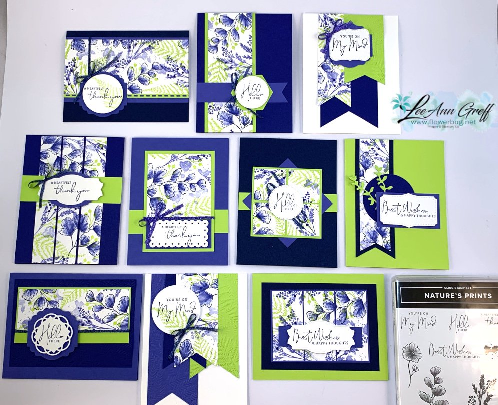 It's been awhile since I made a group of cards with my 5 sheet wonder templates.  The Nature's Prints stamp set was a perfect choice for it.