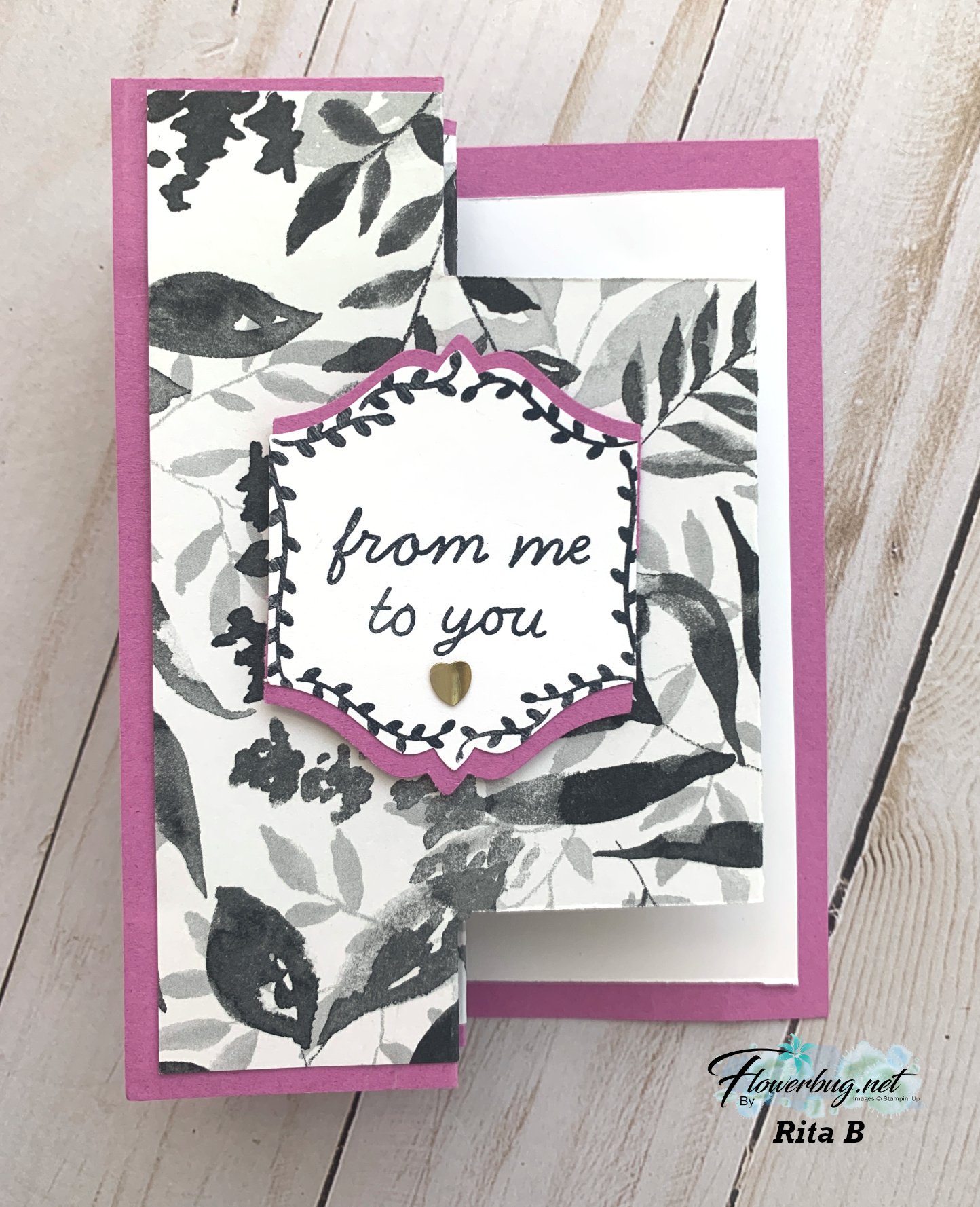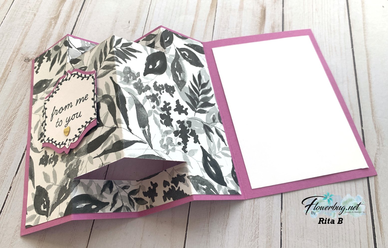 Next is a fabulous fancy fold card made by Rita. She also used this same Botanical Textures DSP along with Petunia Pop card stock.