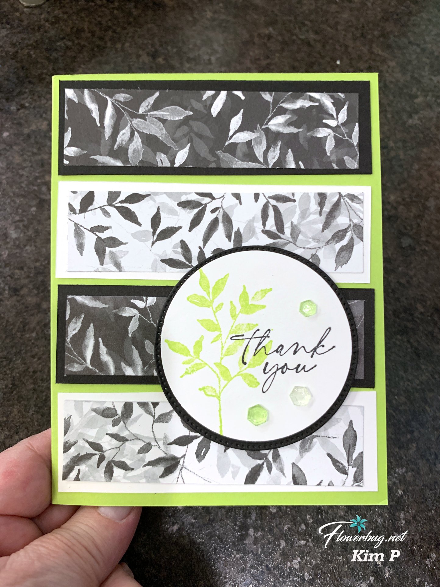 This first card was made by Kim for her Card Club swap.  I had to share it with you because I thought it was so neat.  She used Black, White and Lemon Lime Twist.