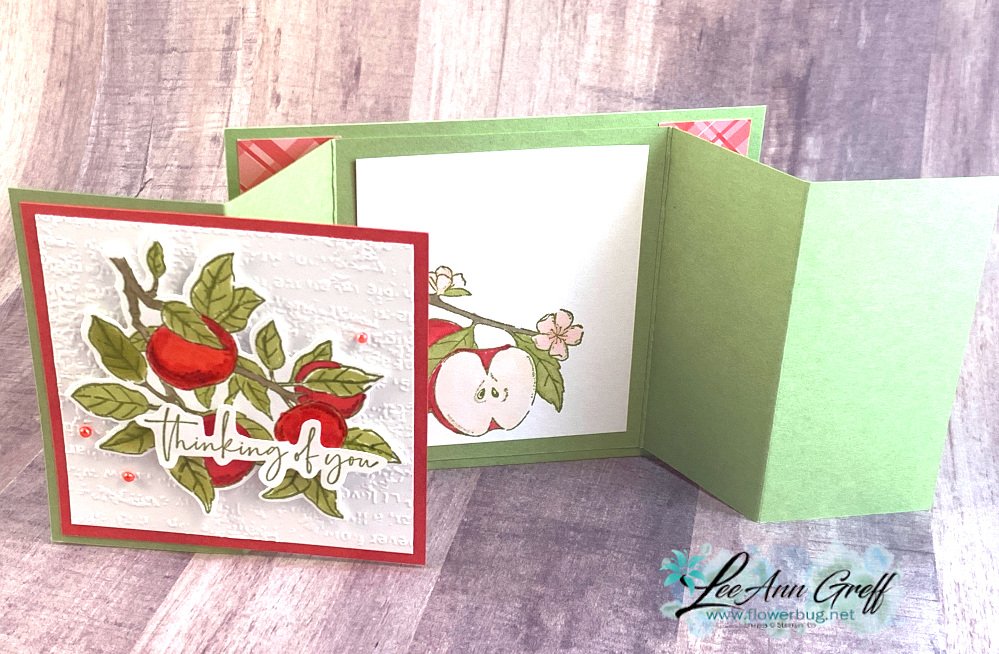 We're making this pretty card at a class on October 1st.  It features the Apple Harvest bundle – only available in September!