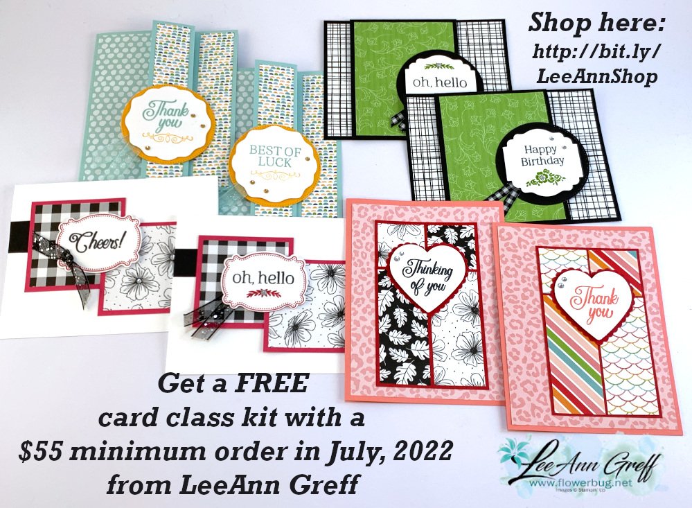 Get a free card class in the mail with a $55 order from July 1-30th.
