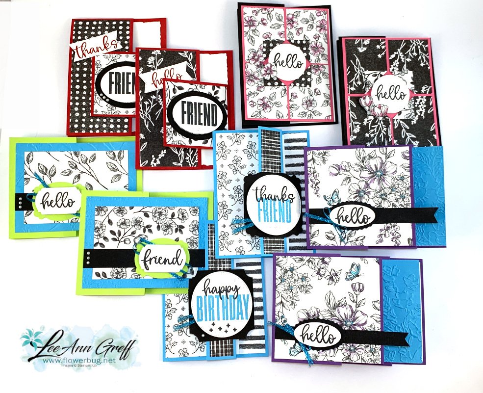 • Black & White with a POP of color & ALL fun folds for my 2nd July card kit to go; or choose the tutorial only option