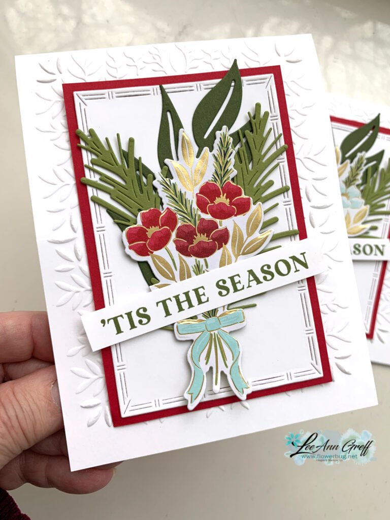 It’s so easy to die-cut the florals with the dies in the Christmas Greenery dies I might just make a few more of these cards.