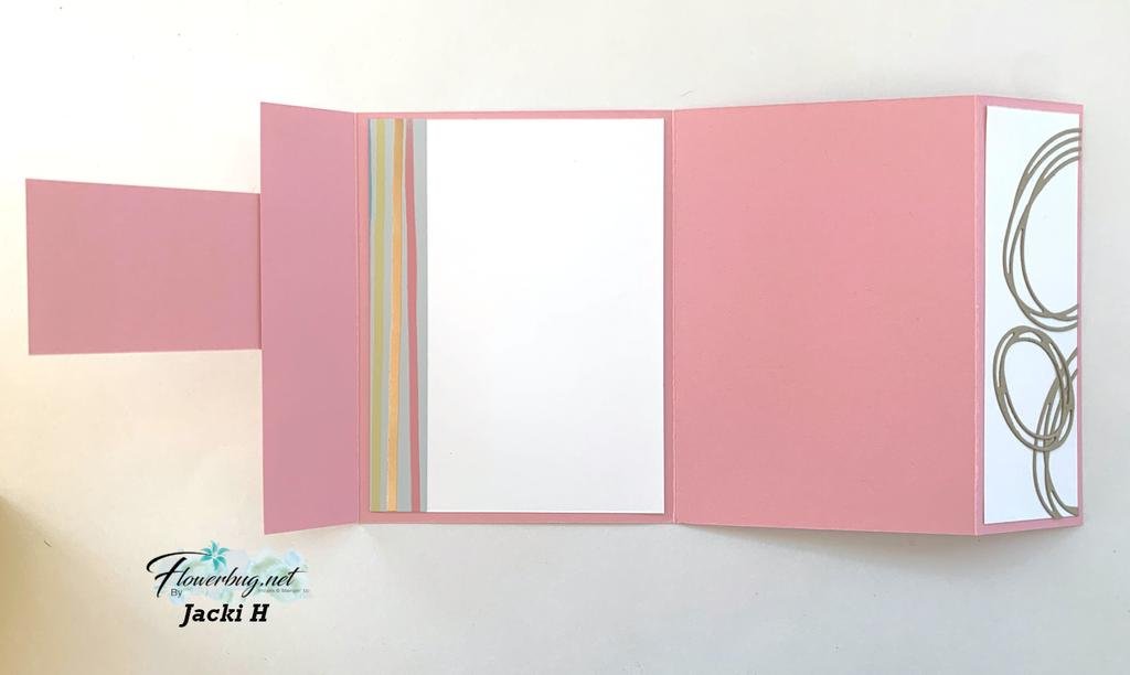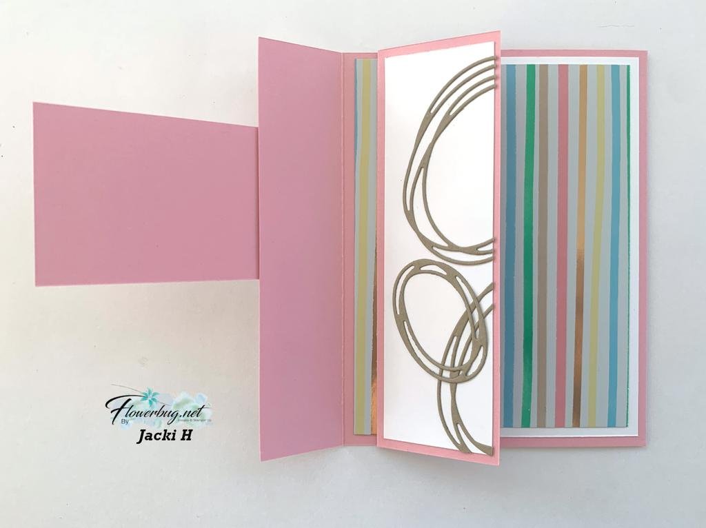 - White card base 4 1/4" X 10 1/4" score at 5 1/2", front layer is 3" X 3 1/2"