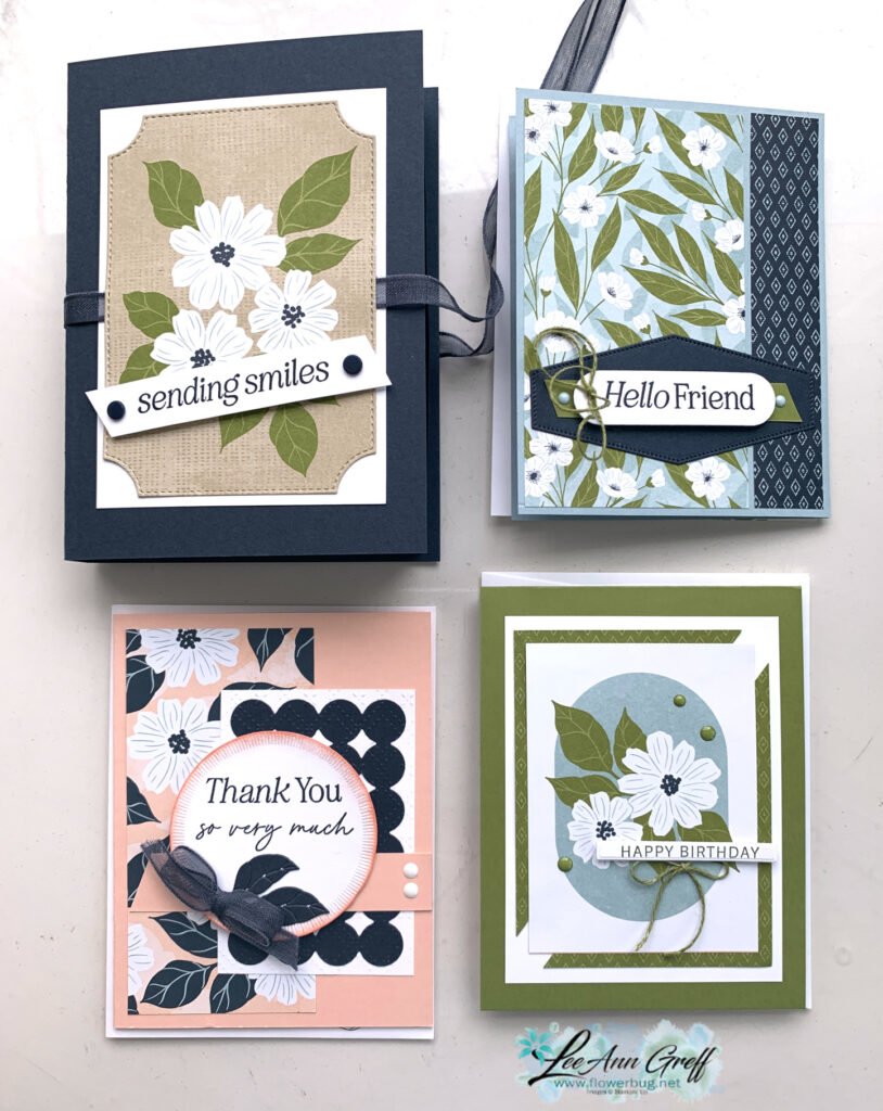 Here’s something new & different in my card kits to go. I decided to play with the Lovely Florals scrapbook kit to create cards with. This kit from Stampin’ Up! includes sooo much product and it’s only $15 on the Last Chance list! *see it here