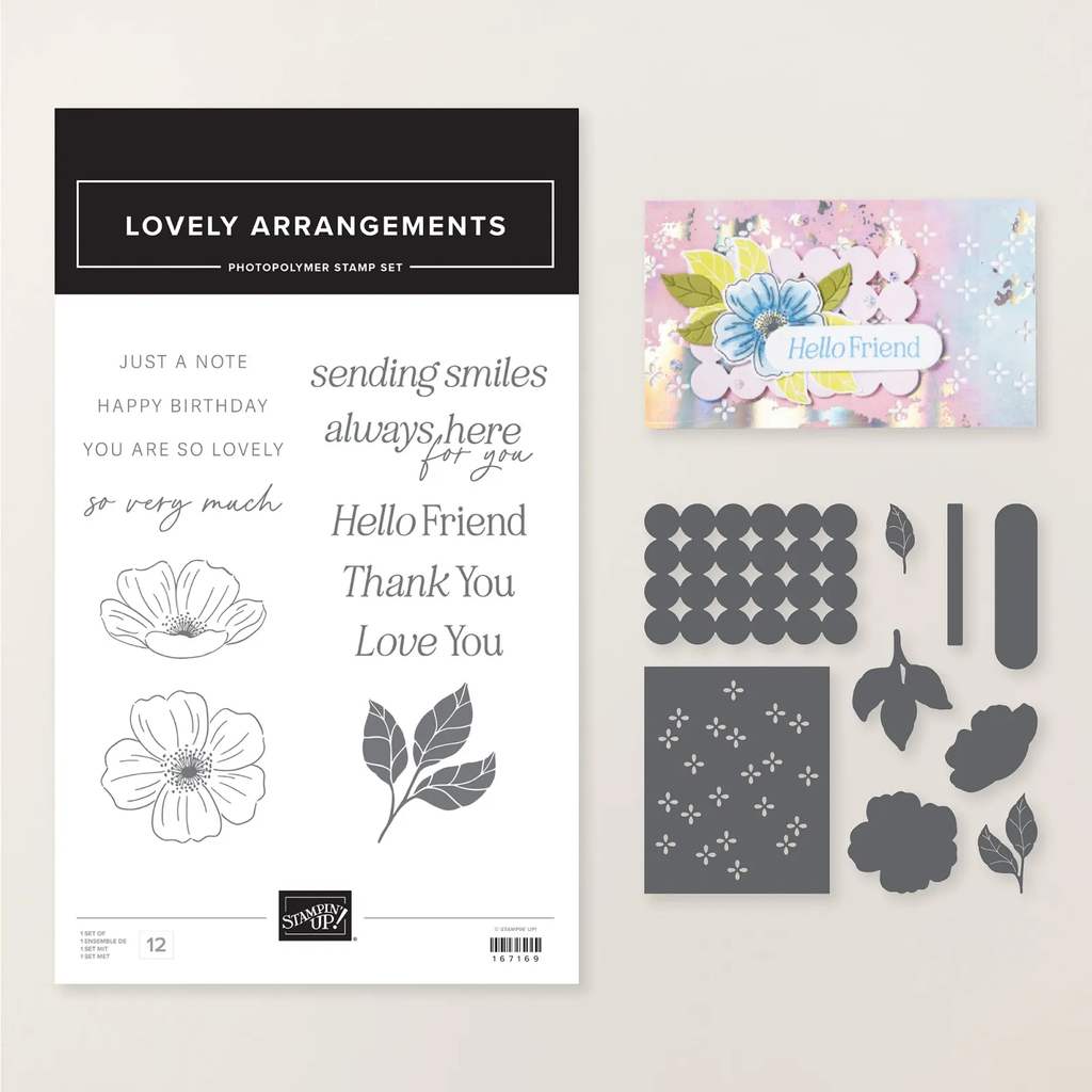 It features the Lovely Blossoms suite; especially the Lovely Blossoms designer paper here and the Lovely Arrangements bundle seen here.